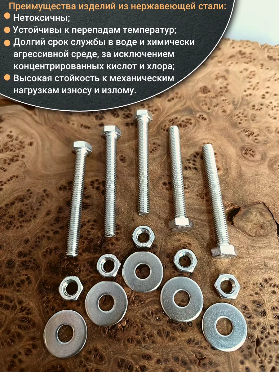 Болт нержавеющий 6х70 мм DIN933 с гайкой и шайбой, 50шт.
