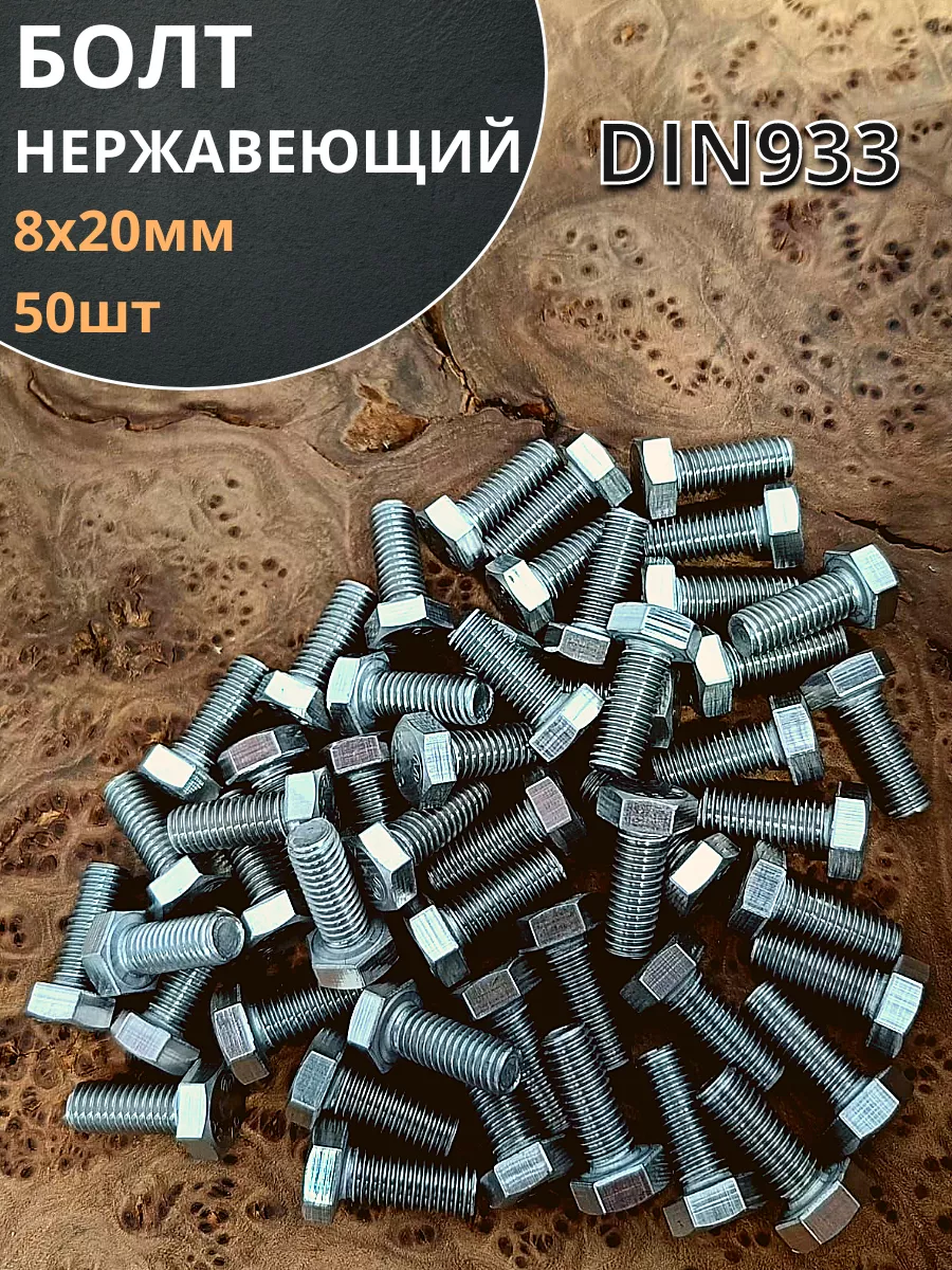 Болт нержавеющий 8х20 мм DIN933 50шт