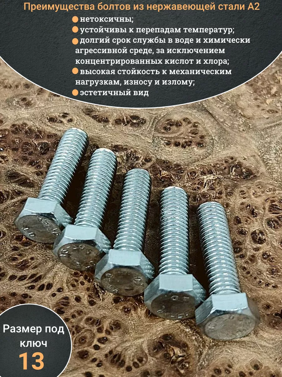 Нержавеющая сталь данной марки повышает прочность болта, который выдерживает динамические усилия и вибрацию. Изделие монтируют в помещениях и вне их. Крепеж имеет практически неограниченный ресурс работы, на который не влияет воздействие воды и изменений температуры воздуха.