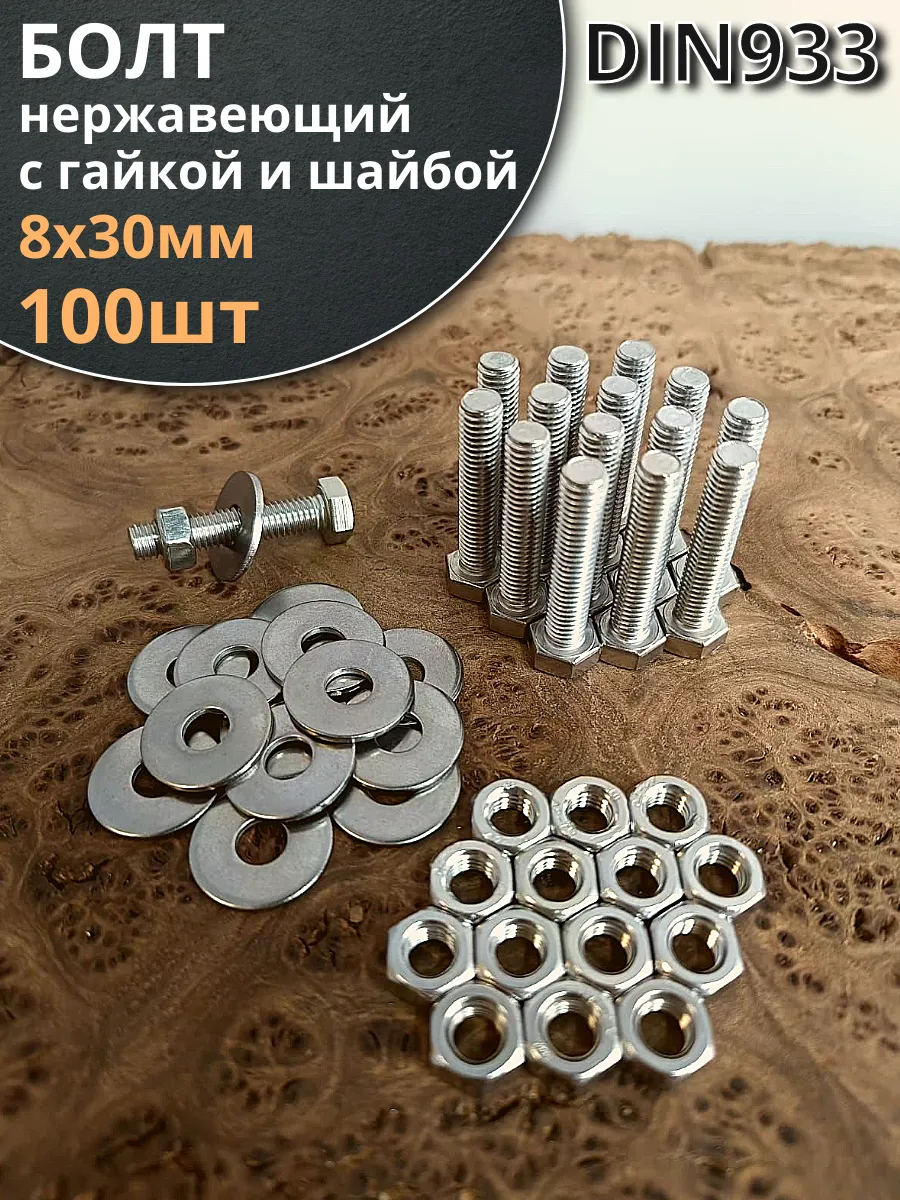 | Болт нержавеющий 8х30 мм DIN933 с гайкой и шайбой, 100шт. | 33385 | 1 шт. |