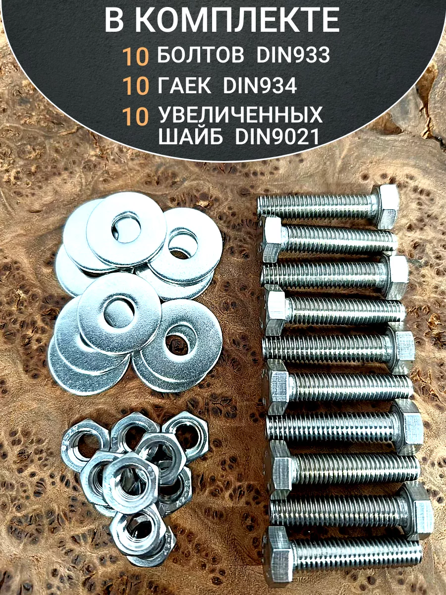 | Болт нержавеющий 8х35 мм DIN933 с гайкой и шайбой, 10шт. | 33342 | 1 шт. |