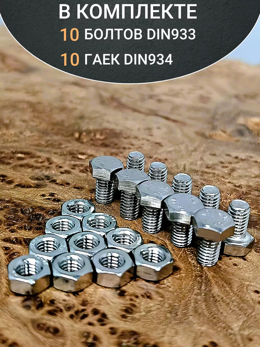 Болт нержавеющий М3х10 мм DIN 933 с гайкой , 10 шт.