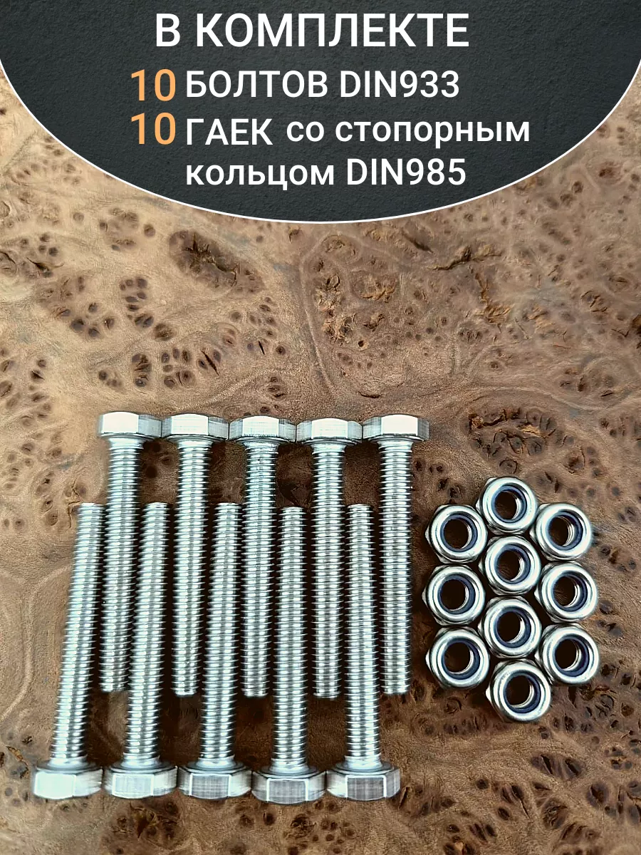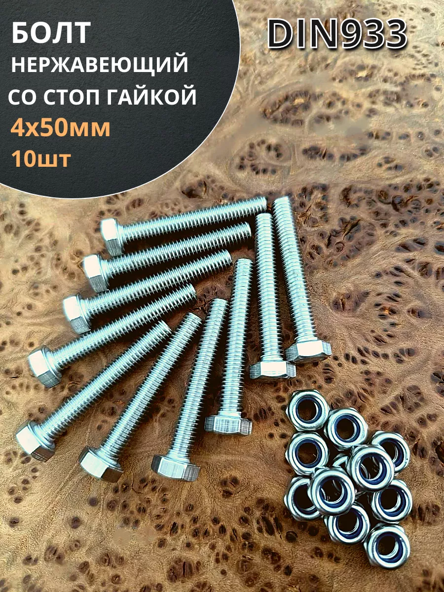 Болт нержавеющий 4х50 мм DIN 933 со стоп гайкой , 10 шт.