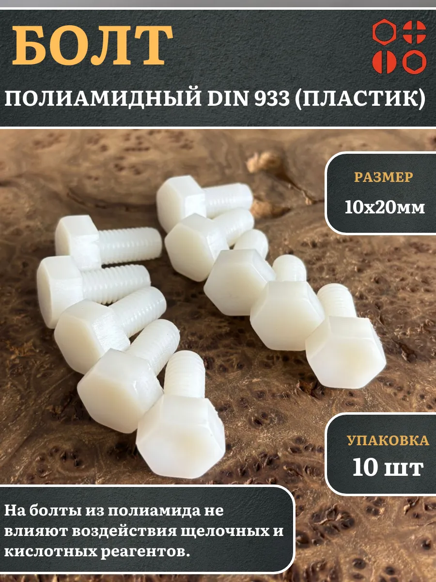 Болт полиамидный 10х20 мм DIN 933 (пластик), 10 шт.