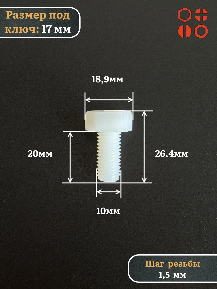 | Болт полиамидный 10х20 мм DIN 933 (пластик), 10 шт. | бп1020933ф10 | 1 шт. |
