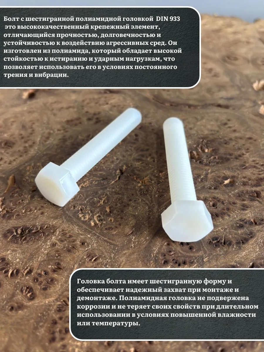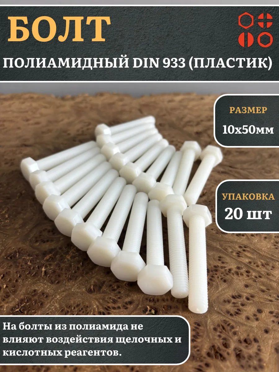 Болт полиамидный 10х50 мм DIN 933 (пластик), 20 шт.