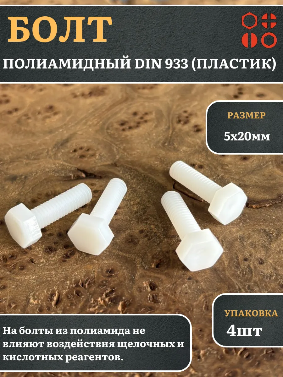 Болт полиамидный 5х20 мм DIN 933 (пластик), 4 шт.