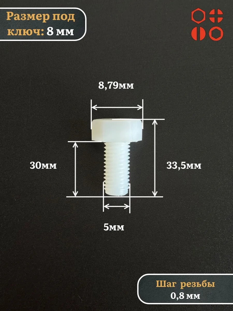 Болт полиамидный 5х30 мм DIN 933 (пластик), 20 шт.