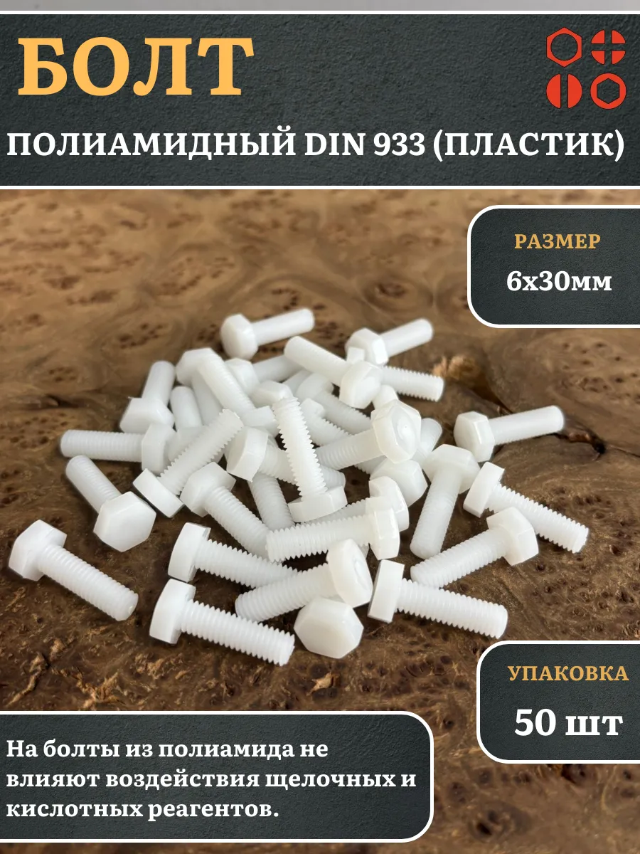 | Болт полиамидный 6х30 мм DIN 933 (пластик), 50 шт. | бп630933ф50 | 1 шт. |