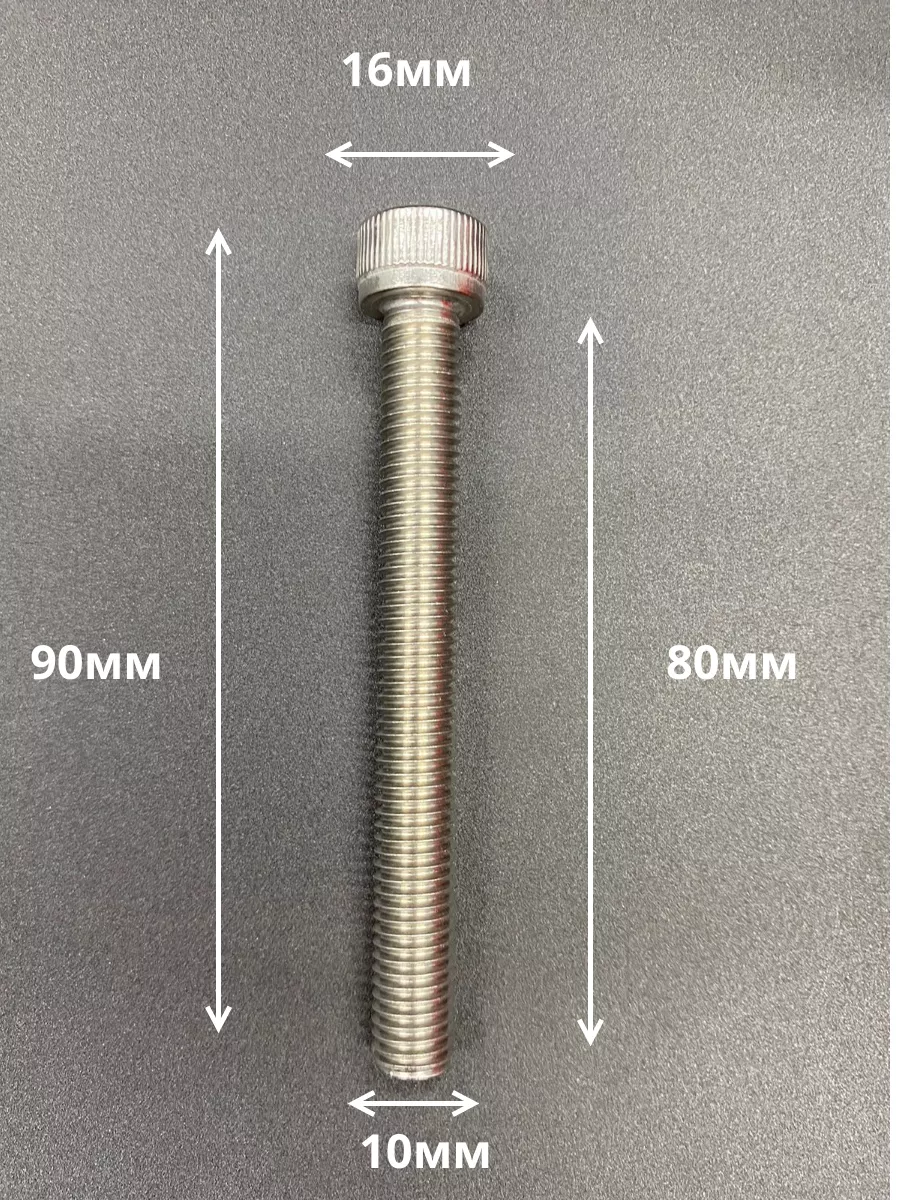 Винт нержавеющий шестигранник М10х80, DIN912, 10 шт