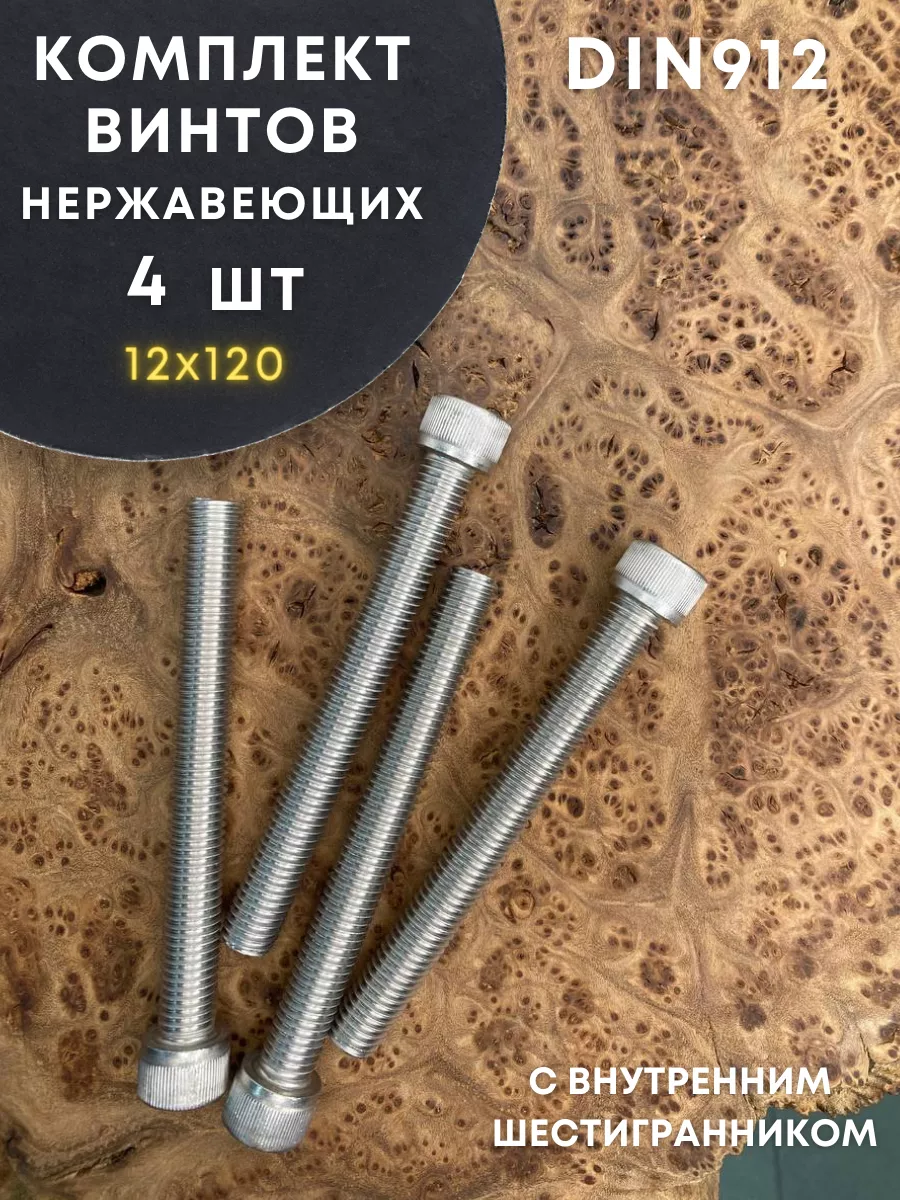 Винт нержавеющий шестигранник М12х120 DIN 912, 4 шт