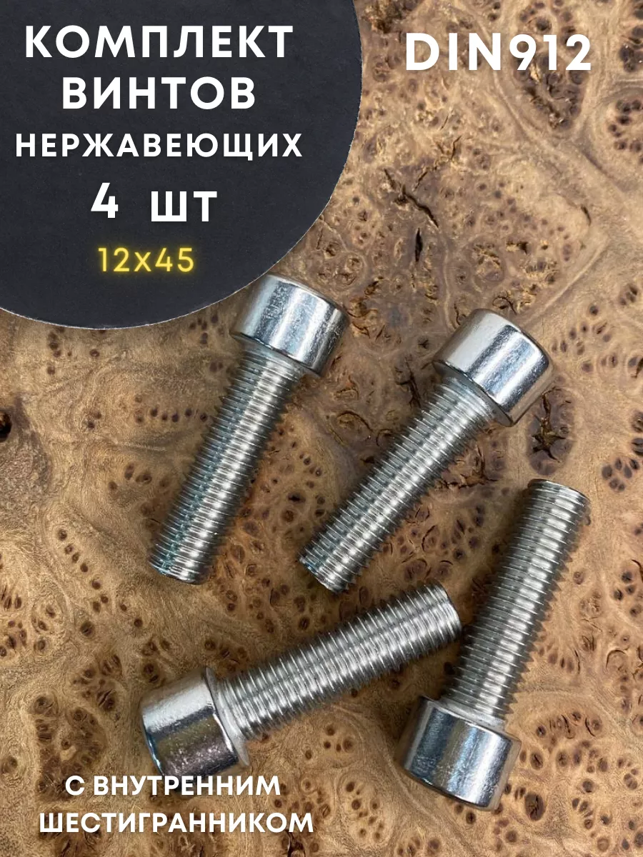 Винт нержавеющий шестигранник М12х45, DIN 912, 4 шт