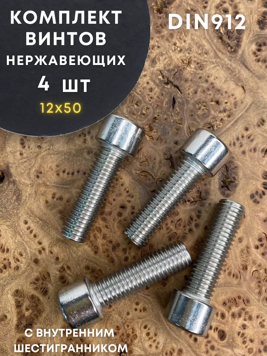 Винт нержавеющий шестигранник М12х50, DIN 912, 4 шт