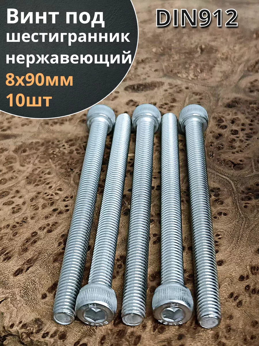 Винт нержавеющий шестигранник М8х90, DIN 912, 10 шт