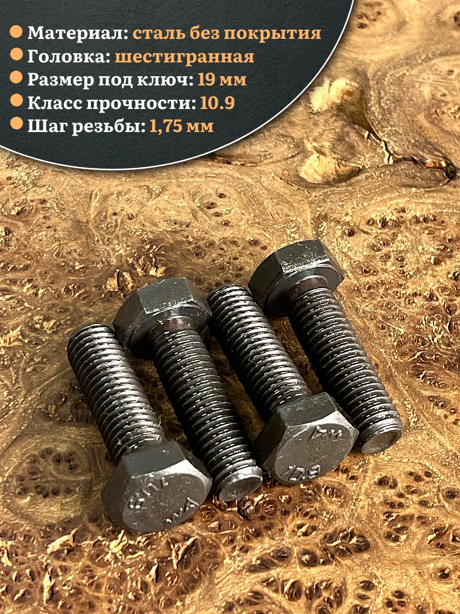Болт высокопрочный чёрный 12х40 мм, к.п.10.9 DIN933,4 шт.