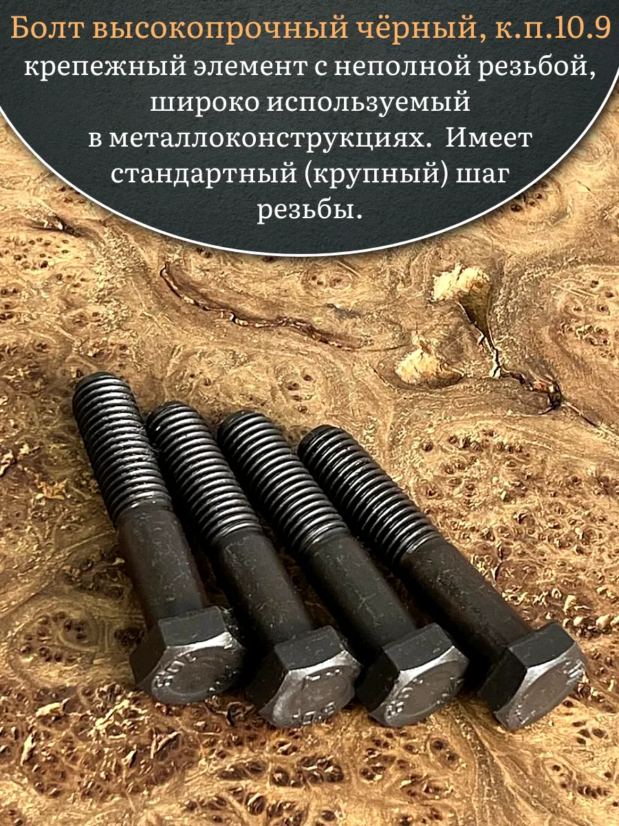 Болт высокопрочный чёрный 14х70 мм, к.п.10.9 DIN931, 4 шт.