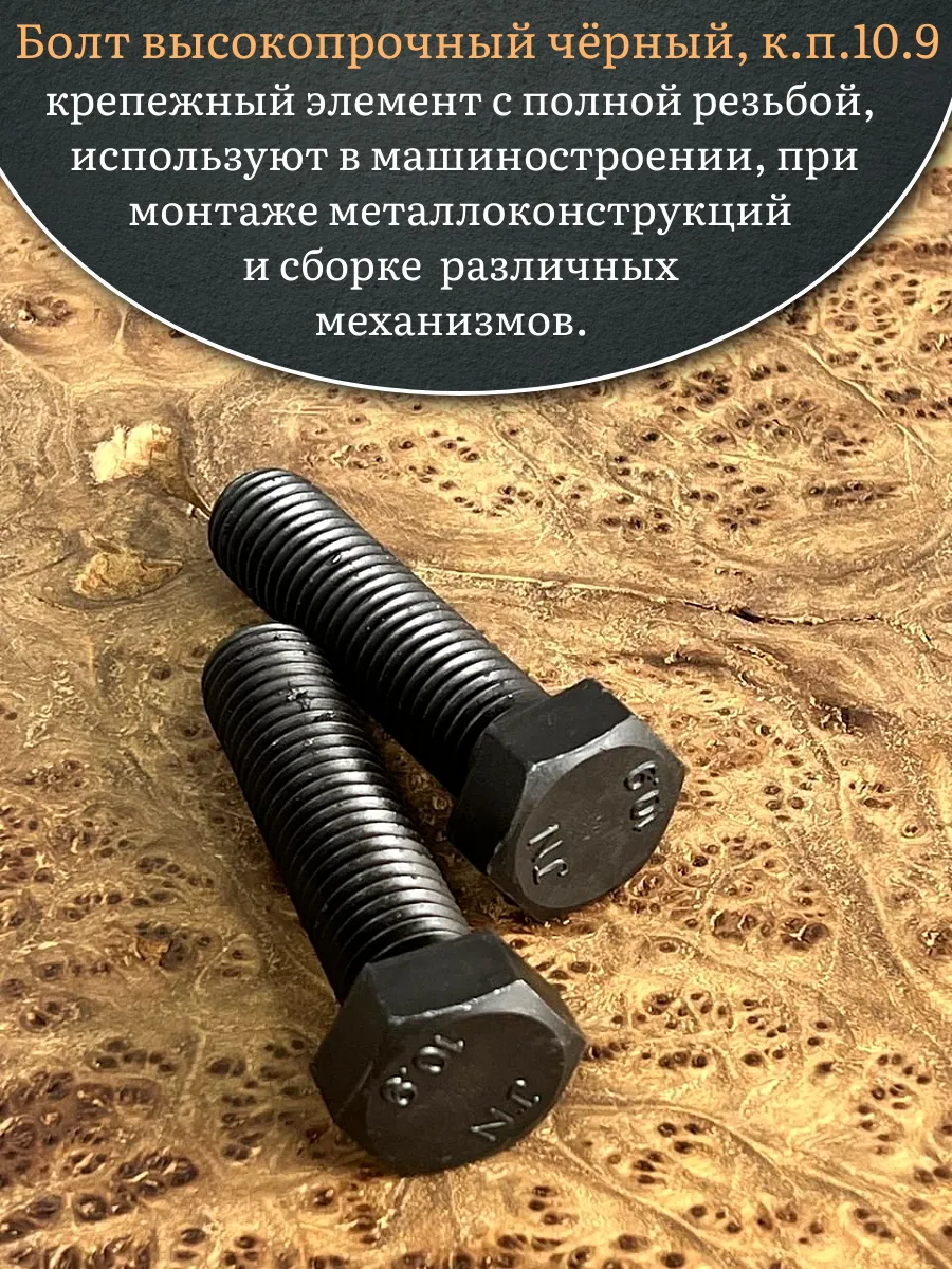 Болт высокопрочный чёрный 18х70 мм, к.п.10.9 DIN933, 2 шт.