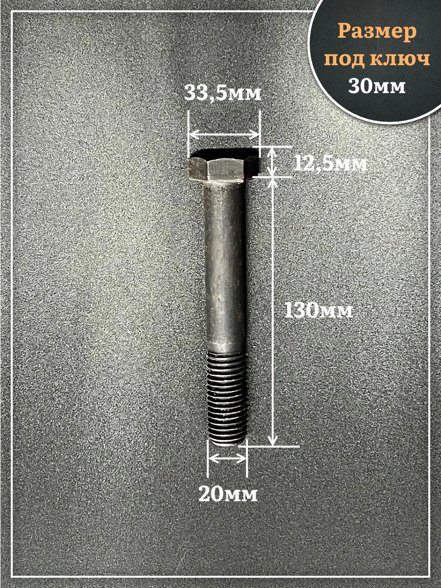 Болт высокопрочный чёрный 20х130 мм, к.п.10.9 DIN931, 4 шт.