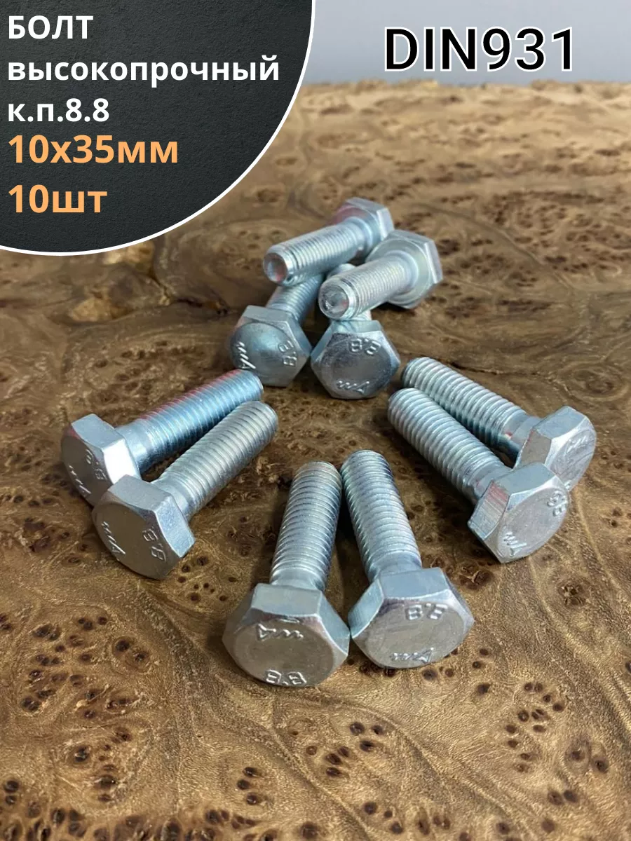 Болт высокопрочный М10х35 ОЦ к.п.8.8 DIN931 (10 шт)