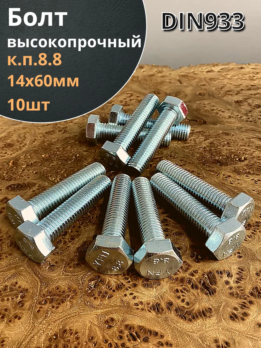 Болт высокопрочный М14х60 ОЦ к.п.8.8 DIN933 (10 шт.)