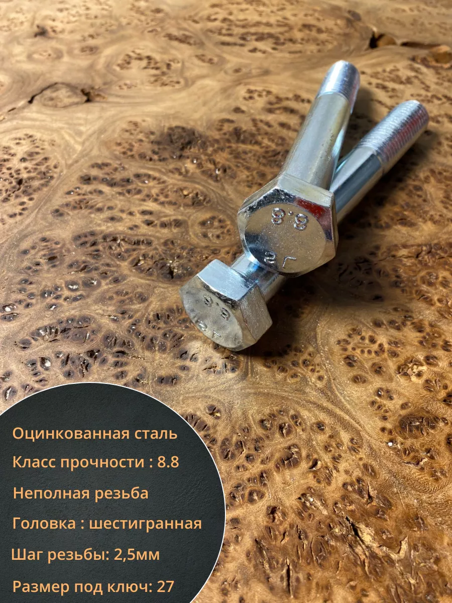 Применяется совместно с гайками и шайбами в машиностроении, строительстве, мебельной промышленности и прочее. Имеет шпильку с полной резьбой и шестигранную голову. Длина болта определяется по длине шпильки.