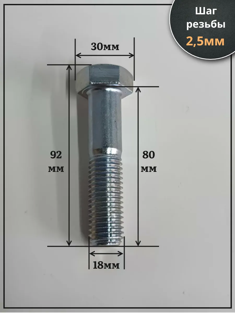 Болт высокопрочный М18х80 ОЦ к.п.8.8 DIN931 (10 шт.)