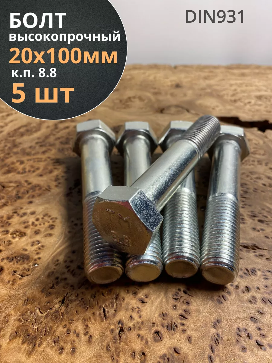 Болт высокопрочный М20х100 ОЦ к.п.8.8 DIN931 (5 шт.)