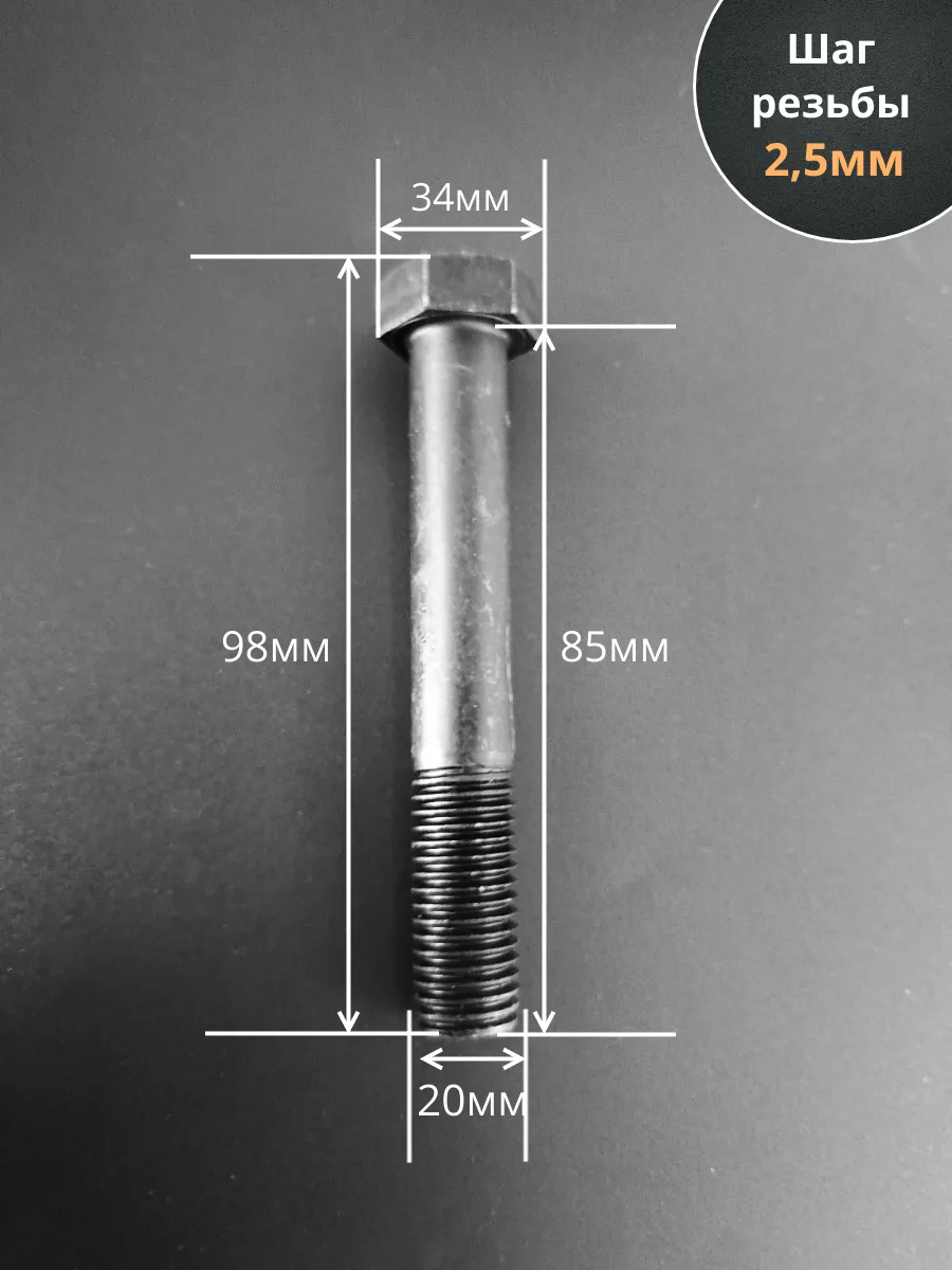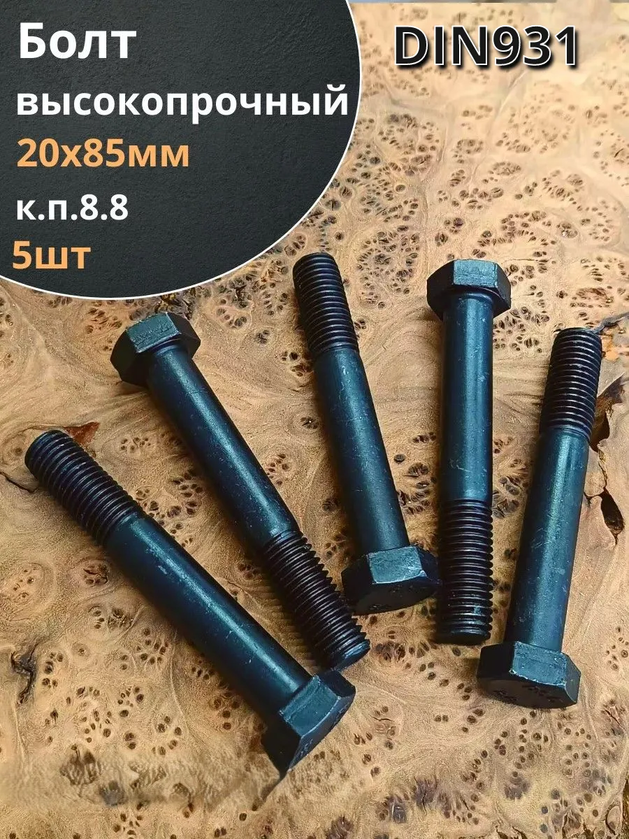 Болт высокопрочный черный М20х85 мм к.п.8.8 DIN931 (5 шт.)
