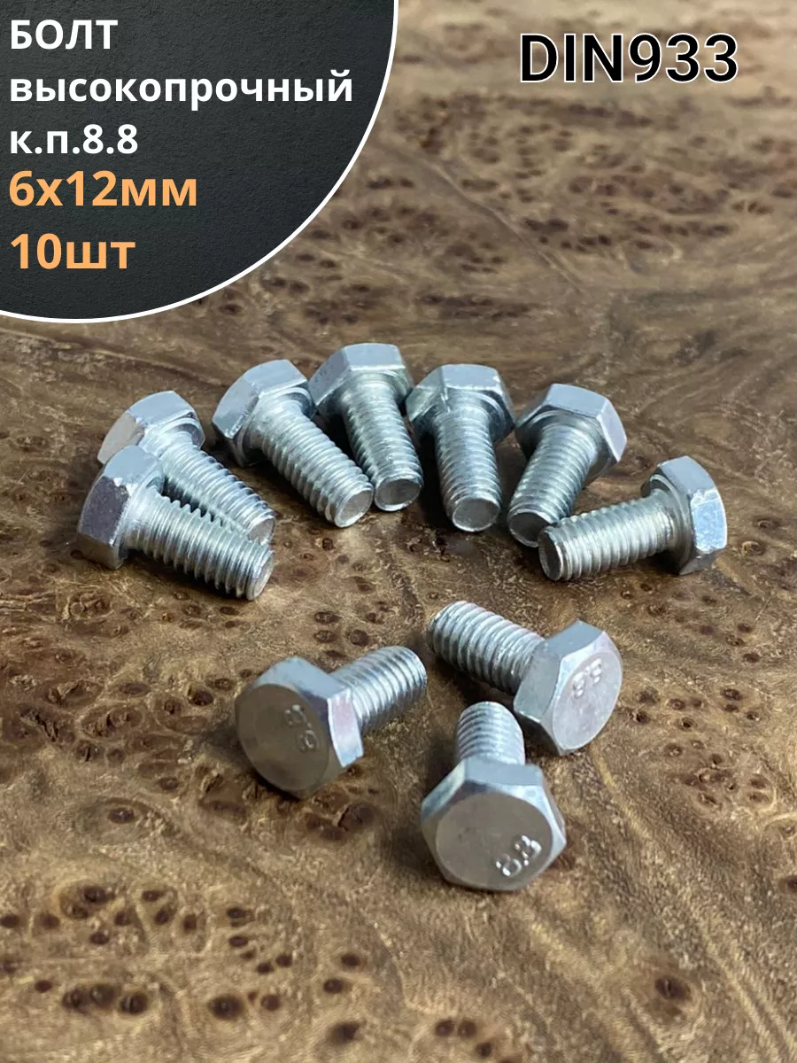 Болт высокопрочный М6х12 ОЦ к.п.8.8 DIN933 (10 шт)