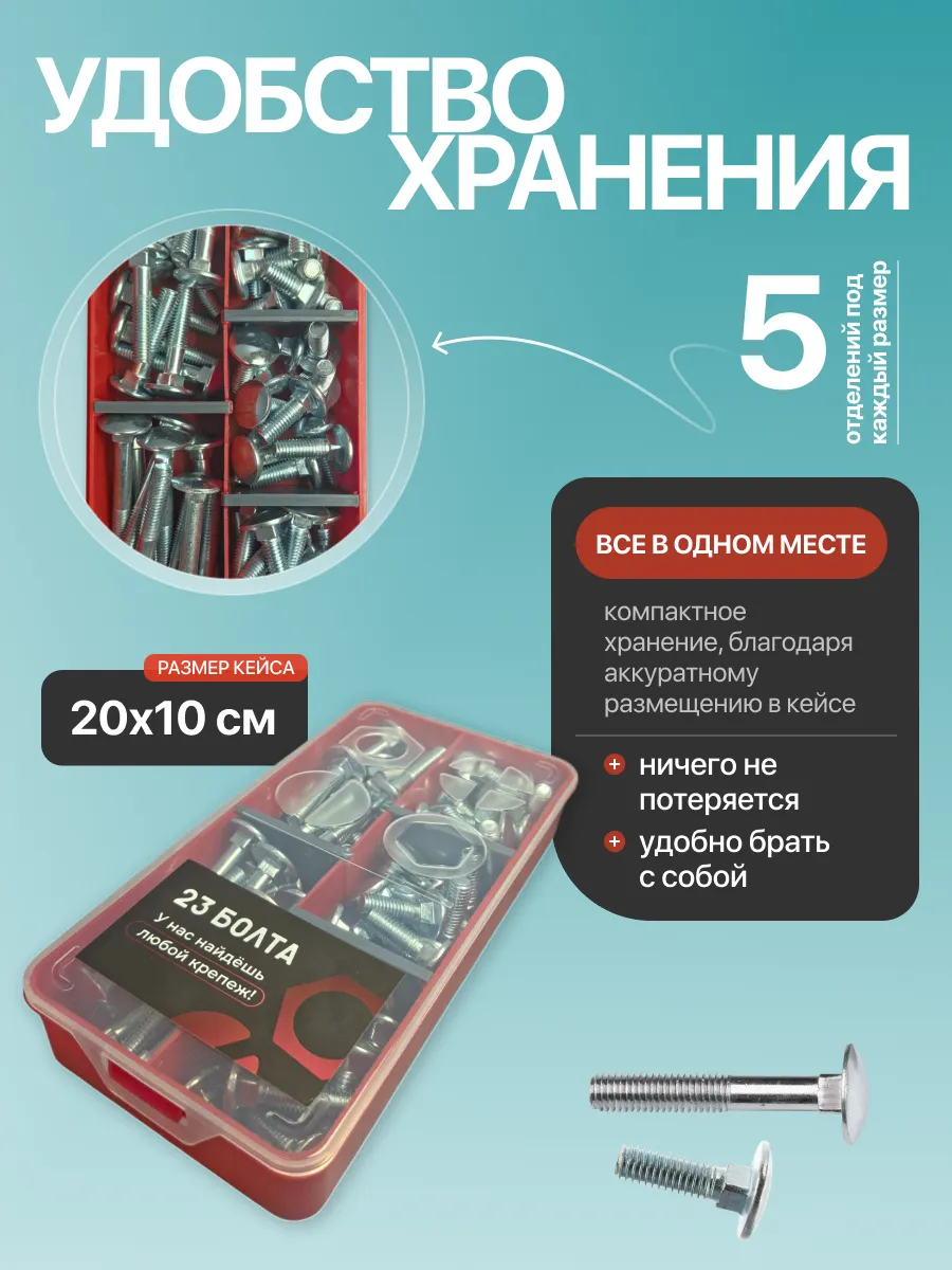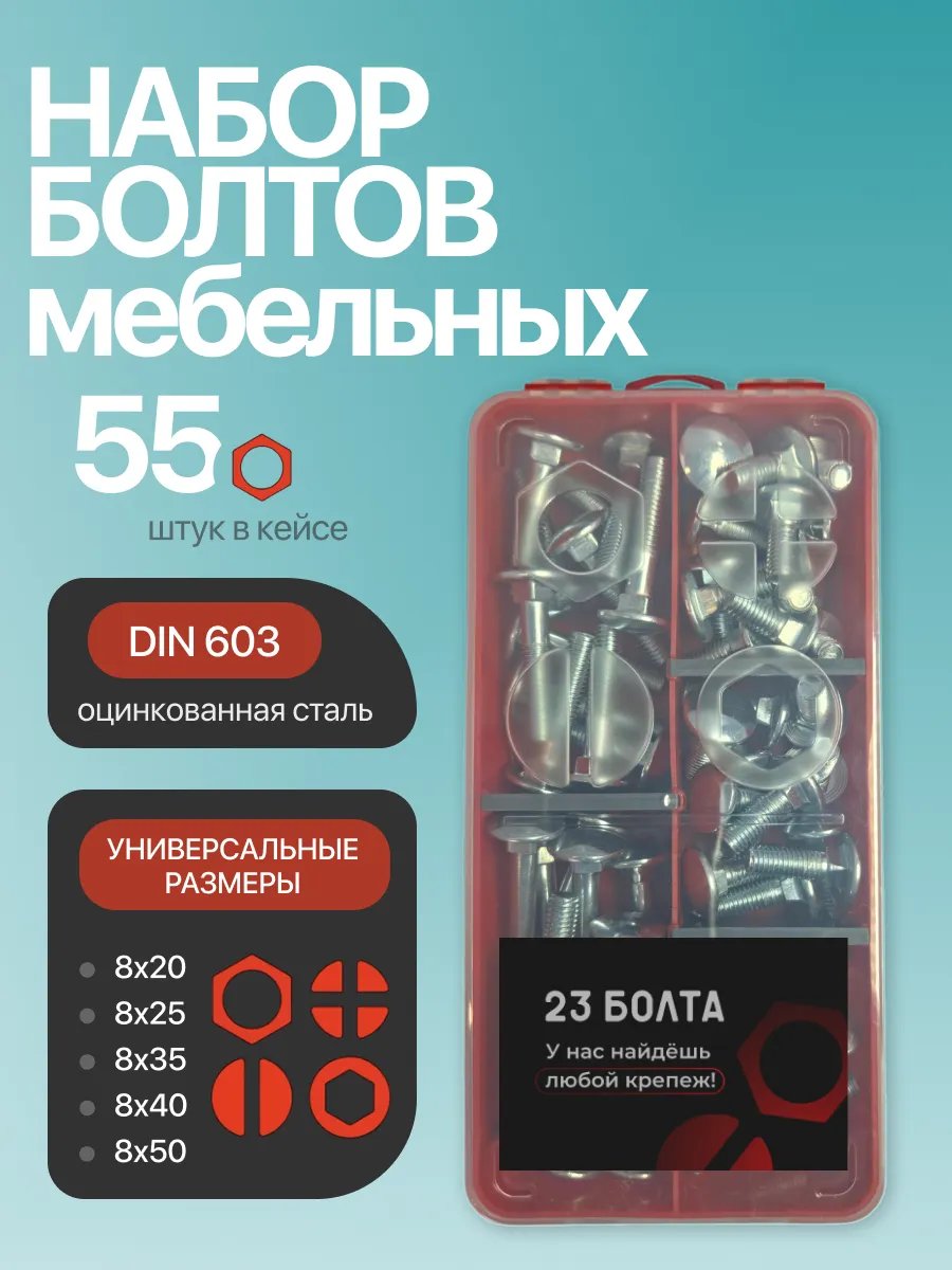 Болты мебельные М8 ОЦ DIN 603 в органайзере НАБОР 1