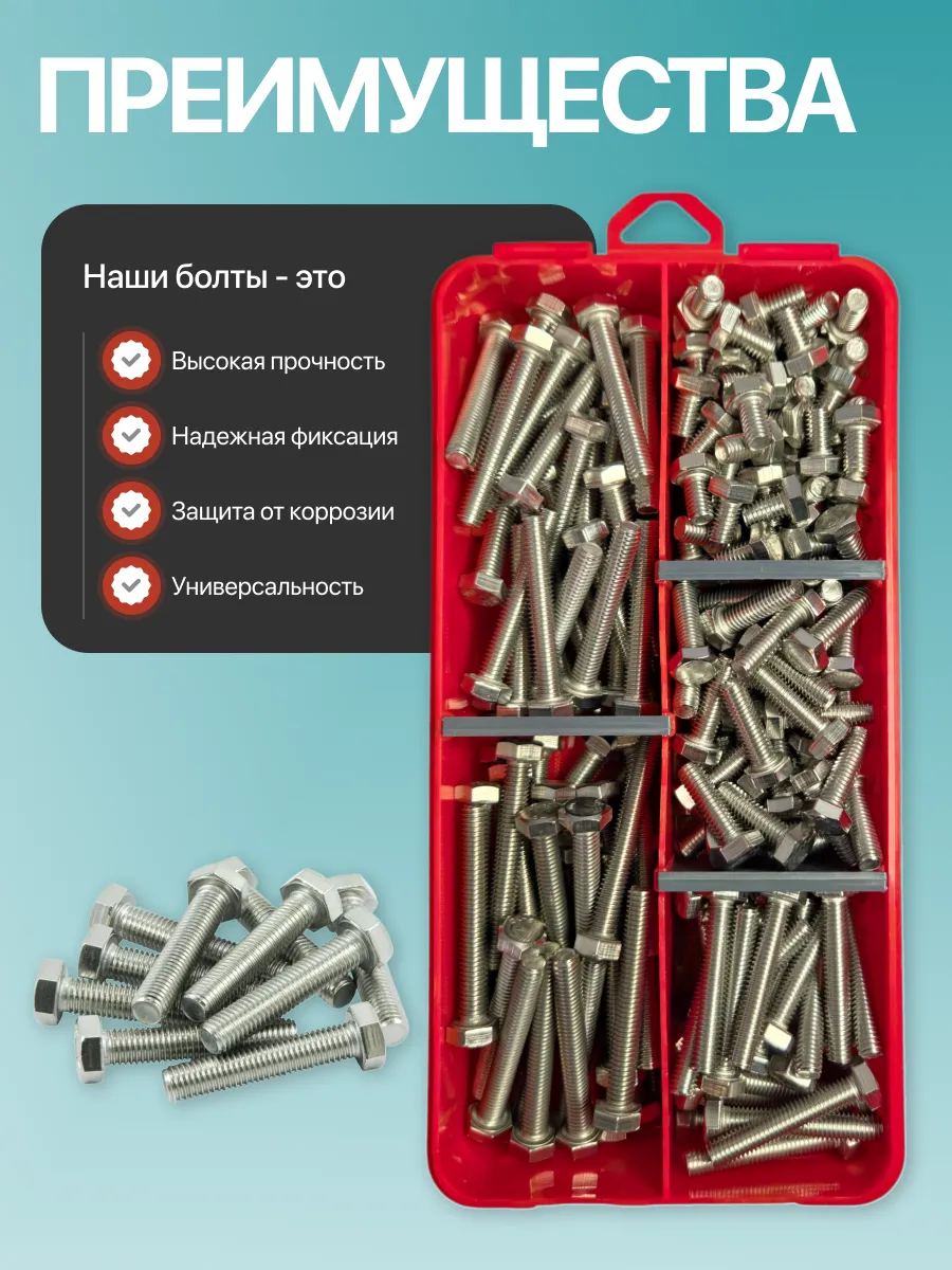 Болты нержавеющие М6 DIN933 в органайзере НАБОР 2