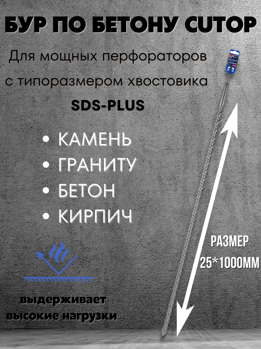 Подходит для бурения бетона, камня, гранита и кирпича.