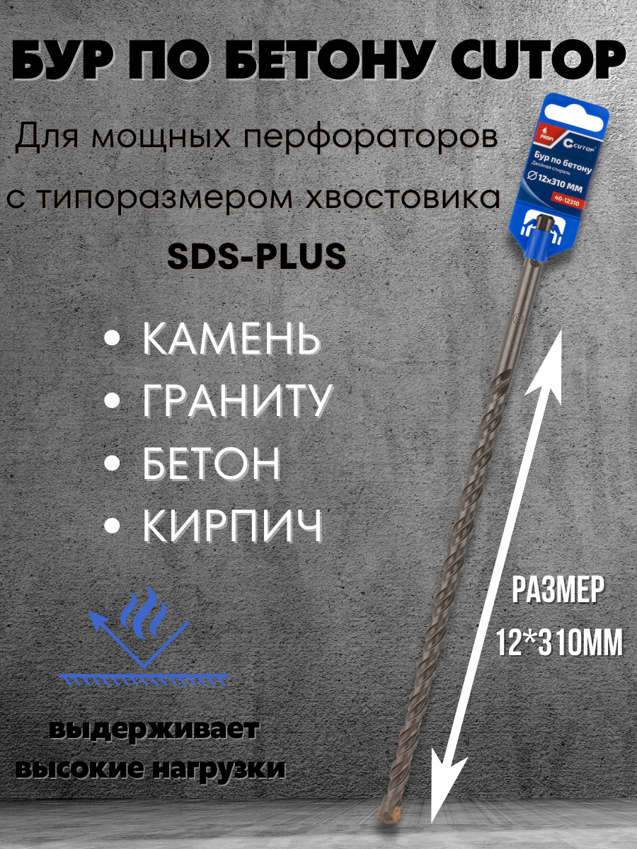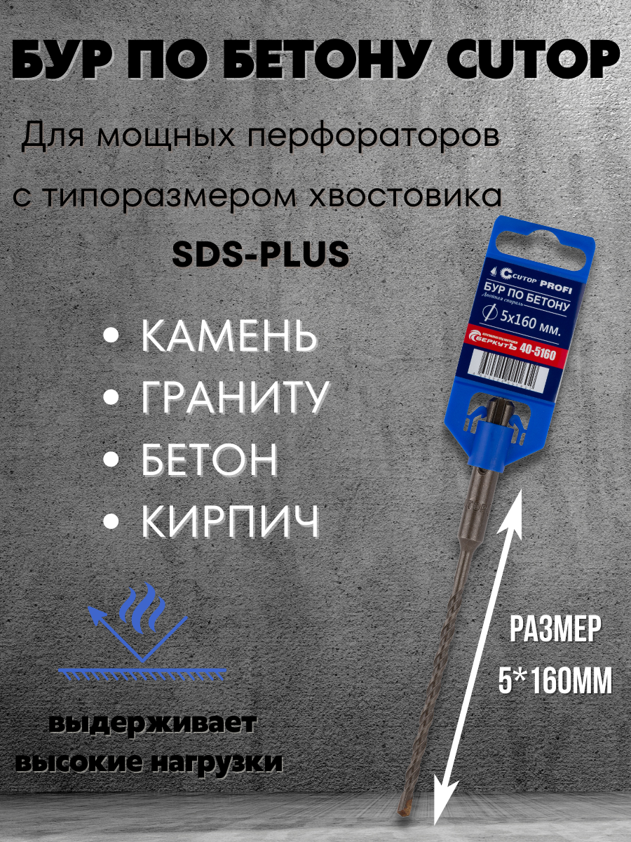 Бур по бетону CUTOP, Profi, двойная резьба, SDS-Plus,