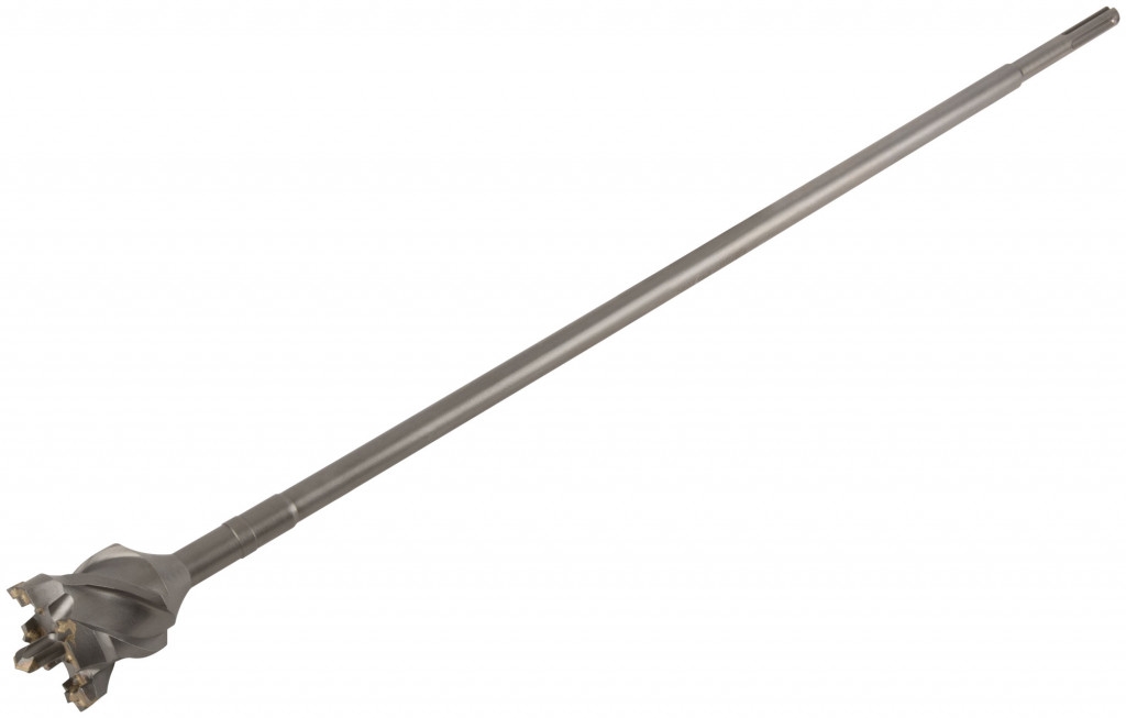 Профи. SDS-MAX хвостовик. Износостойкие. Для сверления глубоких отверстий большого диаметра в бетоне, в том числе армированном, кирпиче, камне. Для профессионального использования. Тройная спираль. Высота рабочей части 100 мм. Материал: термообработанная легированная инструментальная сталь 40 Cr, твердосплавные резцы из карбида вольфрама ВК8С. Упаковка: пластиковый подвес.
