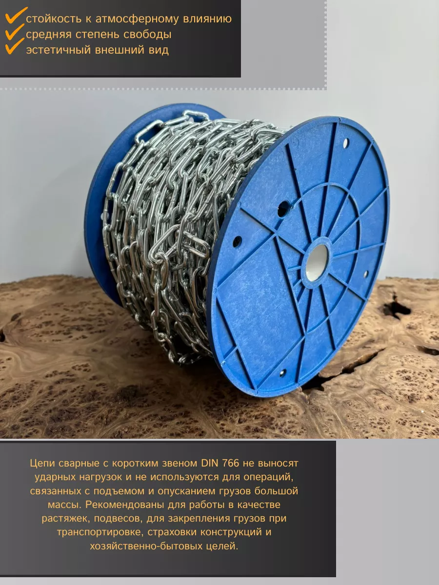 Цепь короткое звено d6 20 м стальная ОЦ DIN766