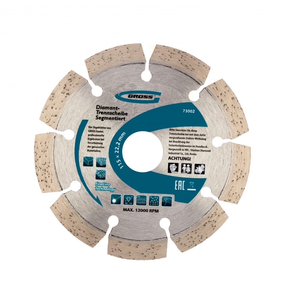 Диск алмазный лазерная приварка турбо-сегментов сухое резание 115х22,2 мм Gross