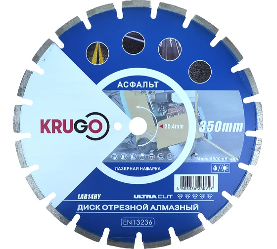 Диск алмазный сегментный лазерная сварка для асфальта 350х25,4х40х3,2х10/17 мм KRUGO