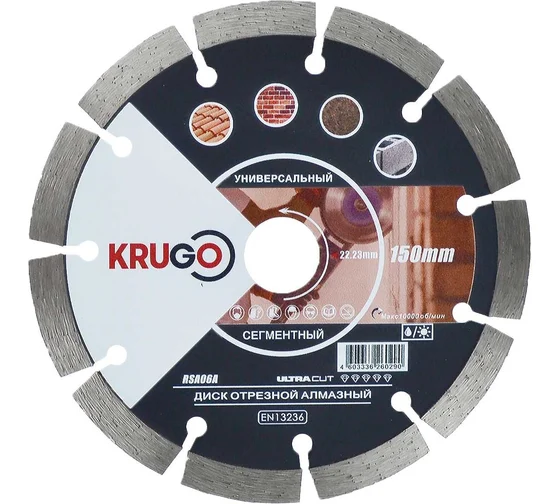 Диск алмазный сегментный по кирпичу/бетону/граниту 230х2,6х22,23х10 мм KRUGO