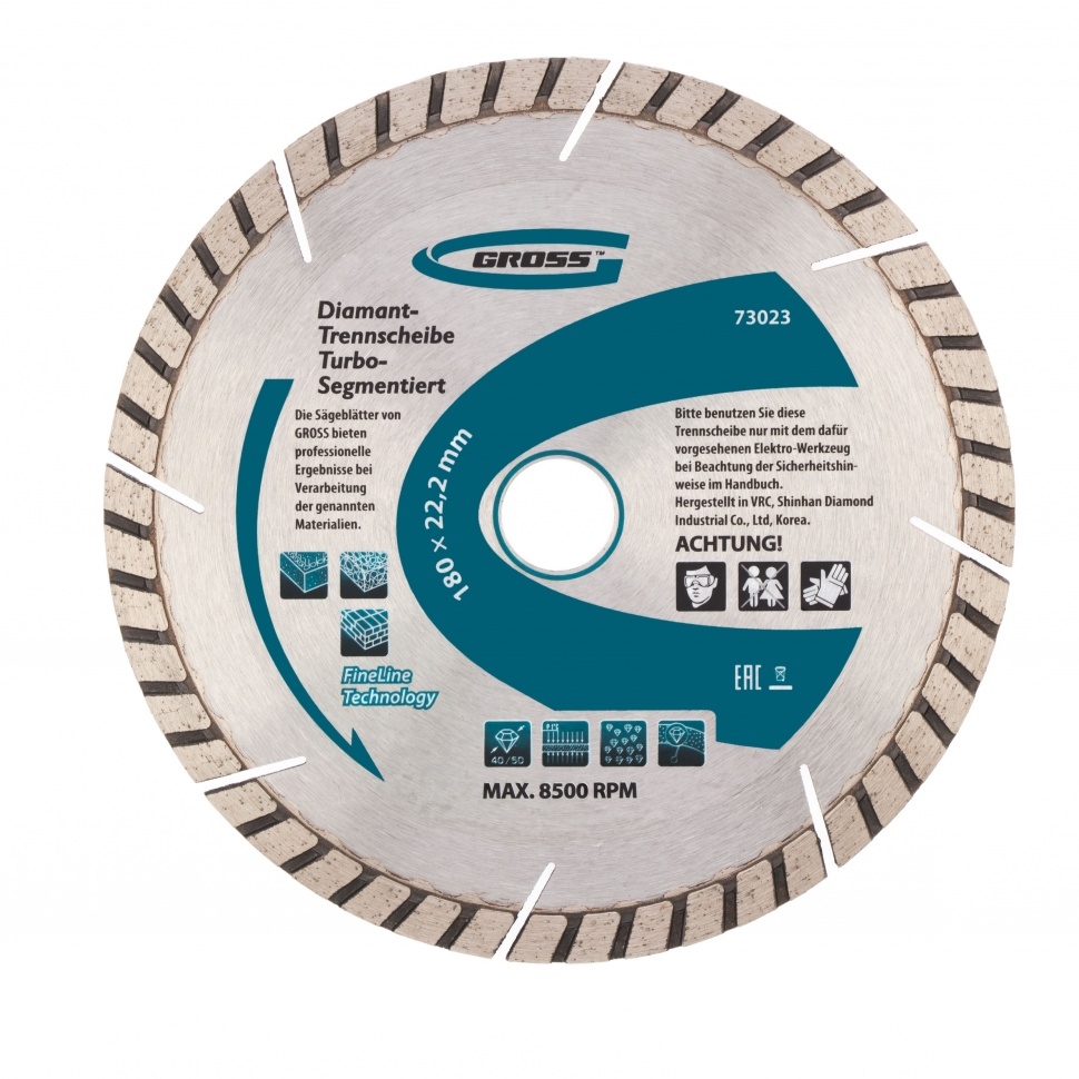 | Диск алмазный турбо-сегментный сухое резание 150х22,2 мм Gross | 73022 | 1 шт. |