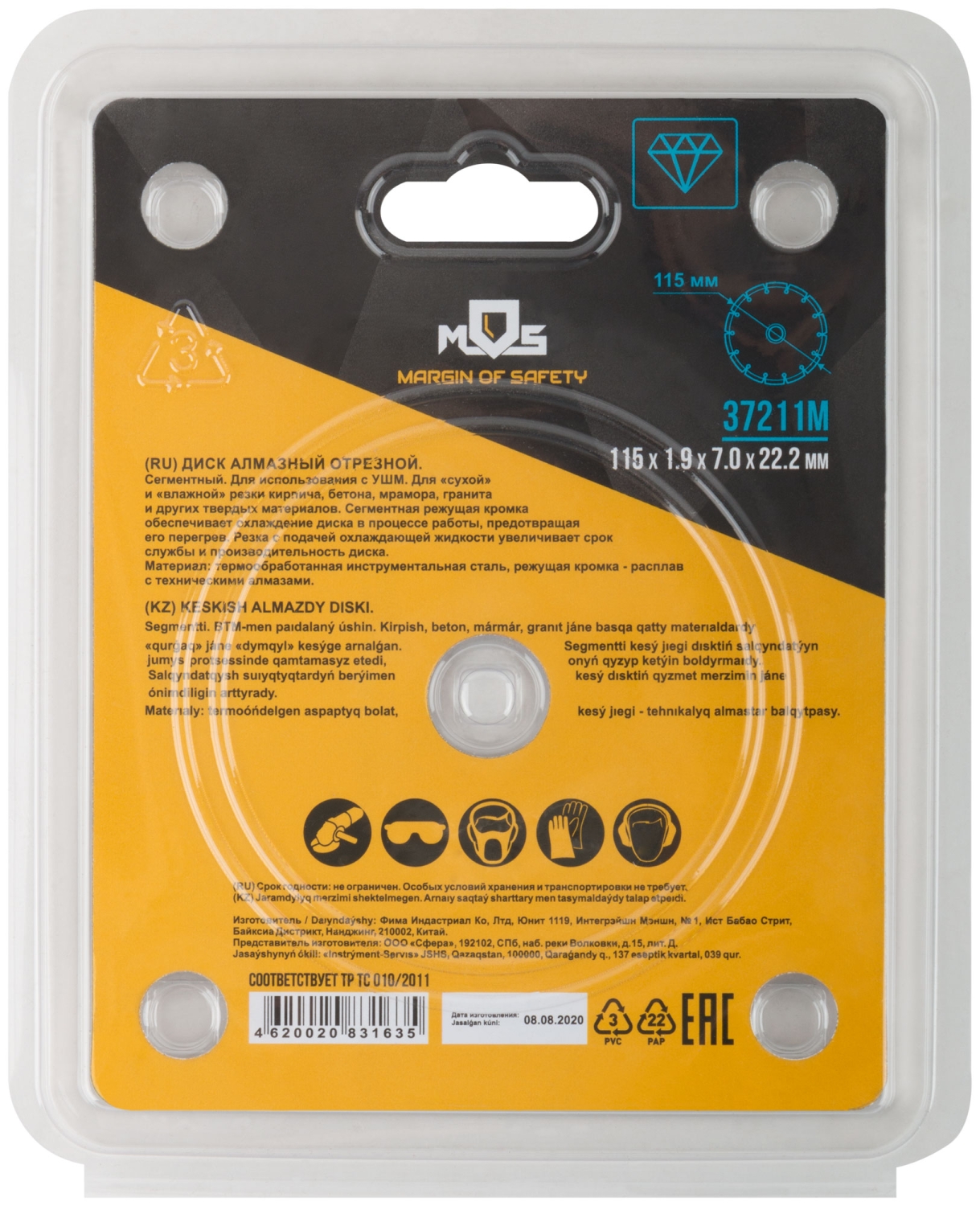 Диск отрезной алмазный сегментный (сухая и влажная резка) 115х1,9х7,0х22,2 мм