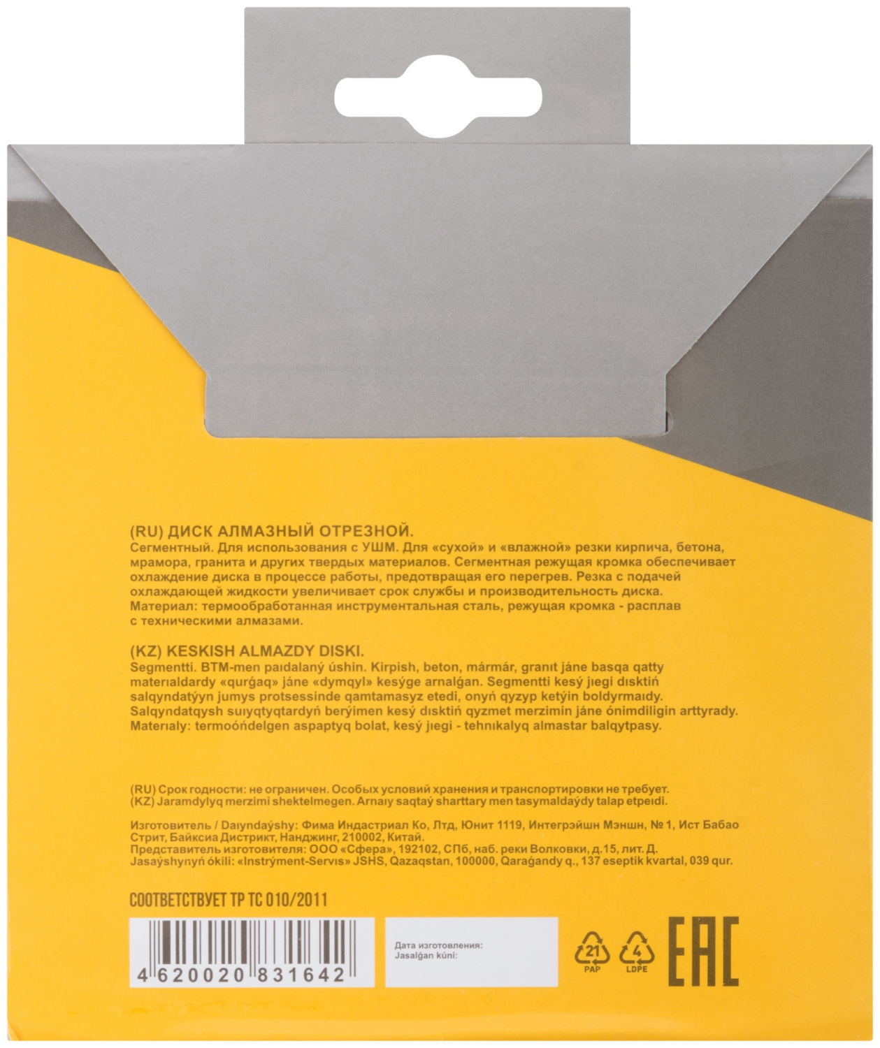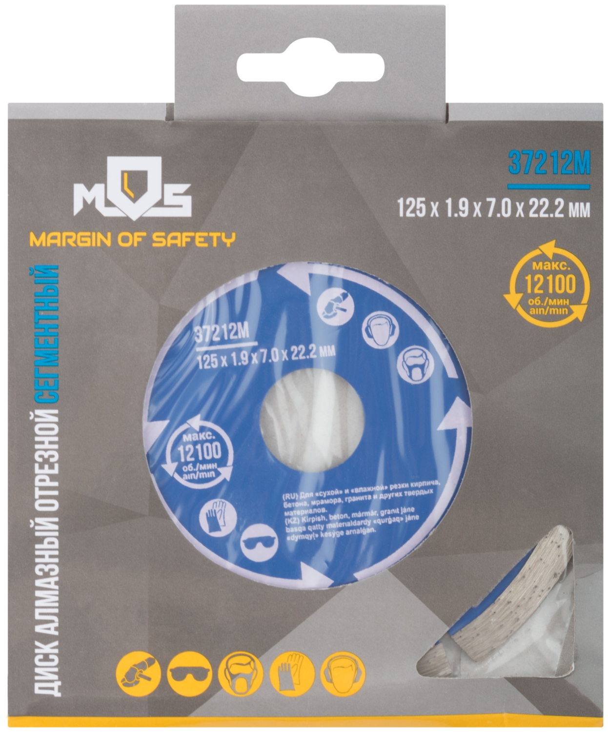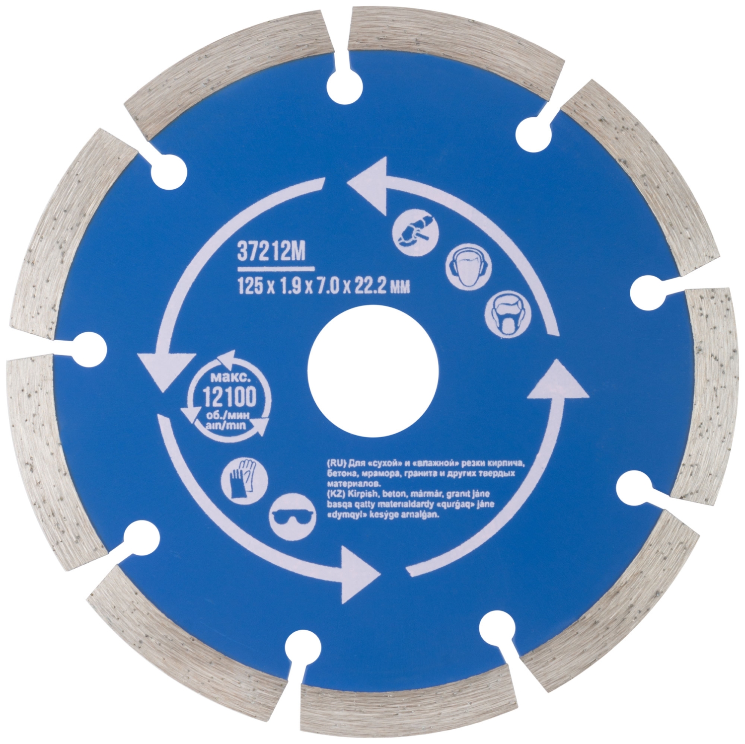 Сегментный. Для использования с УШМ . Посадочный диаметр 22,2мм. Для "сухой" и "влажной"резки кирпича, бетона, мрамора,гранита и других твердых материалов. Сегментная режущая кромка обеспечивает охлаждение диска в процессе работы, предотвращая его перегрев. Материал: инструментальная сталь, режущая кромка-расплав с техническими алмазами. Уп: Блистер