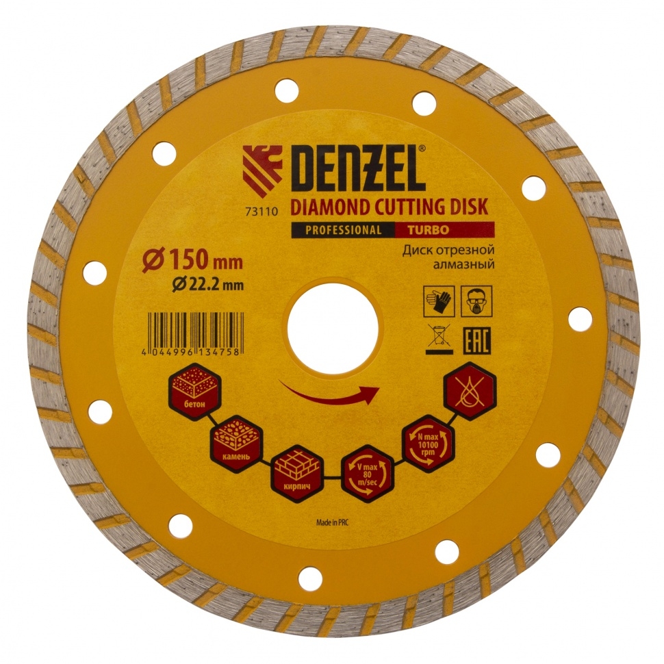 Диск отрезной алмазный сегментный турбо сухое резание 150х22,2 мм Denzel