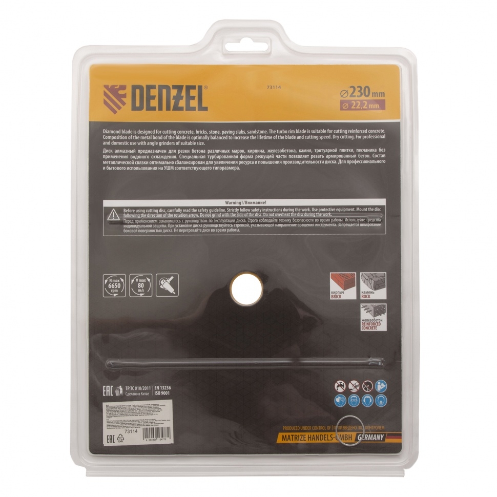 Диск отрезной алмазный сегментный турбо сухое резание 230х22,2 мм Denzel
