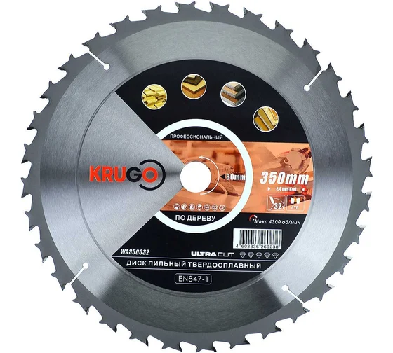 Диск пильный по дереву 350х3,4/2,4х32Тх30 мм KRUGO