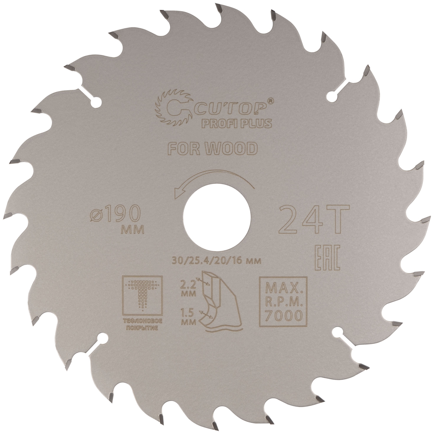 Диск пильный по дереву с тефл.покр.24Т CUTOP Profi Plus 190х1,5/2,2х30/25,4/20/16 мм