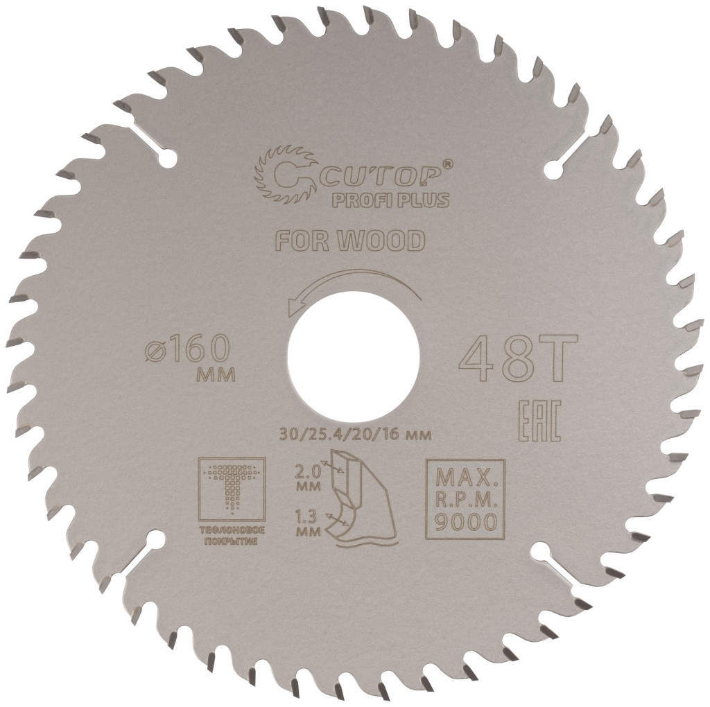 Диск пильный по дереву с тефл.покр.48Т CUTOP Profi Plus 160х1,3/2,0х30/25,4/20/16 мм