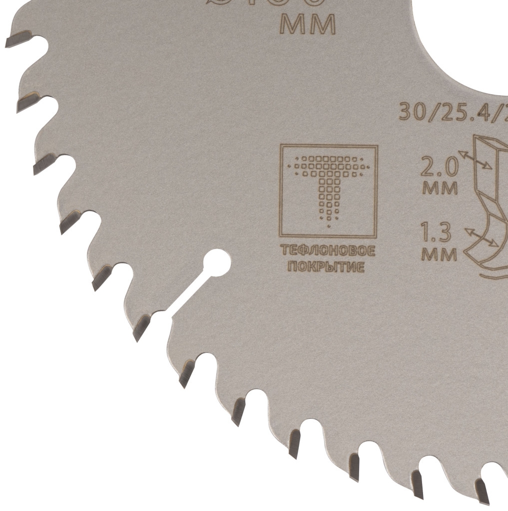 Диск имеет тефлоновое покрытие и компенсационные пазы, которы способствуют быстрому теплоотводу. Благодаря этому рез получается ровный, а диск не деформируется и имеет более длительный срок службы. Изготавливаются диски в специальной автоматической индукционной машине, которая обеспечивает более гладкую поверхность и острые зубья. Материал: инструментальная сталь, карбидные зубья. Упаковка: блистер