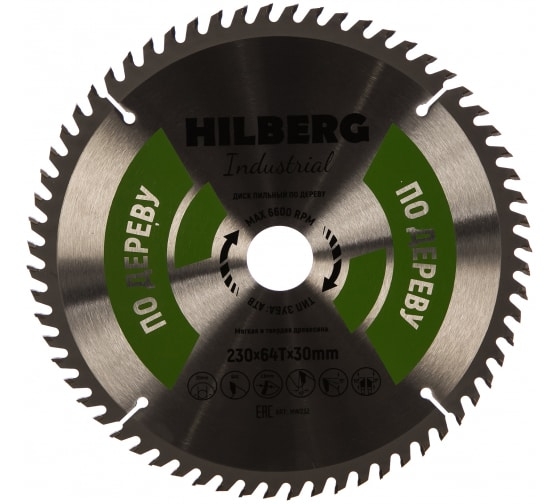 Диск пильный по дереву 230х64Т*30 мм Hilberg Industrial HW232 1 шт.