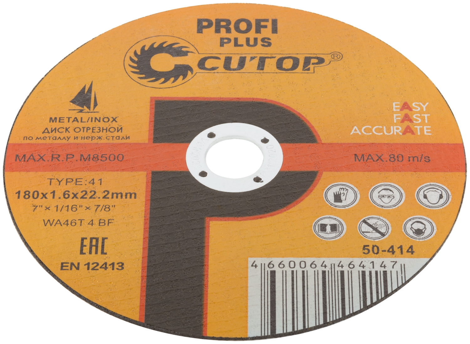 CUTOP Profi PLUS. Использованы уникальные технологии производства. Профессиональный отрезной диск для промышленного использования на основе монокристаллического электрокорунда, который улучшает КПД диска и позволяет увеличить количество резов в несколько раз. Предназначен для резки металла и н ержавеющей стали. Для углошлифовальных машин. Посадочный диаметр 22,2 мм.