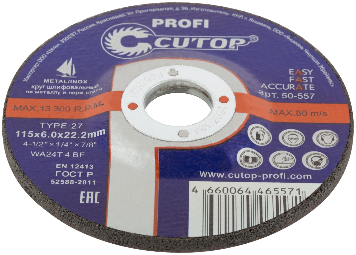Диск Проф шлифовальный по мет и нерж.стали Т27-115х6,0х22,2 мм Cutop Profi